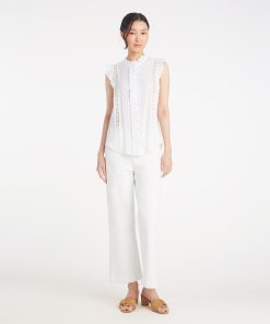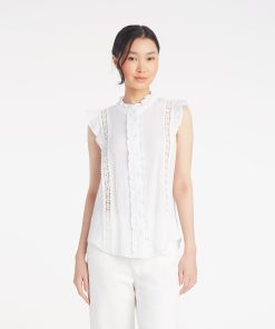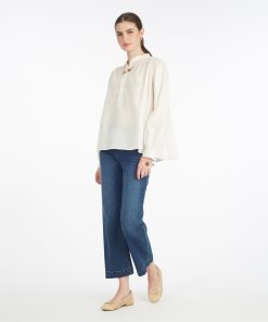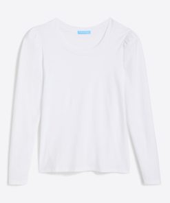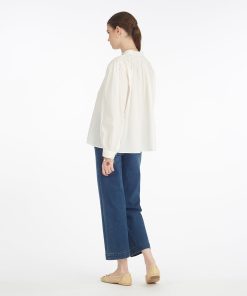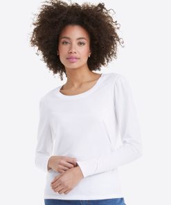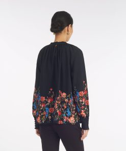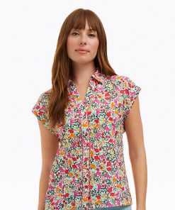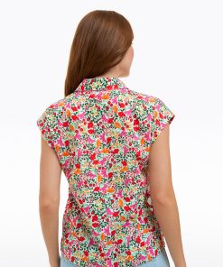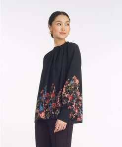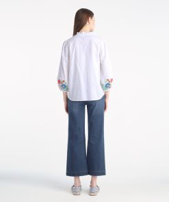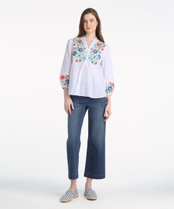 Draper James Women’s Puff Sleeve Top With Floral Embroidery | Blue Stripe Floral Embroidery