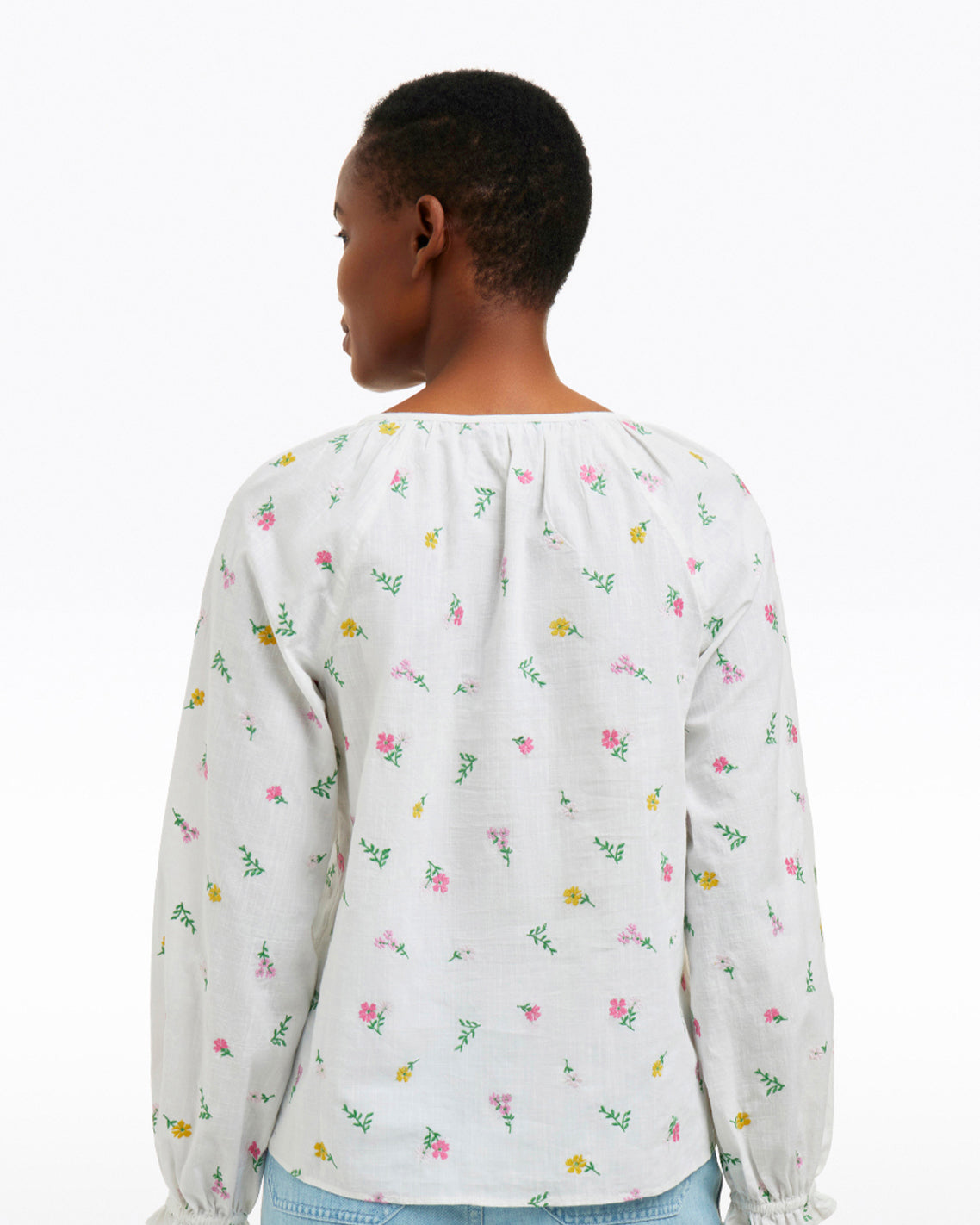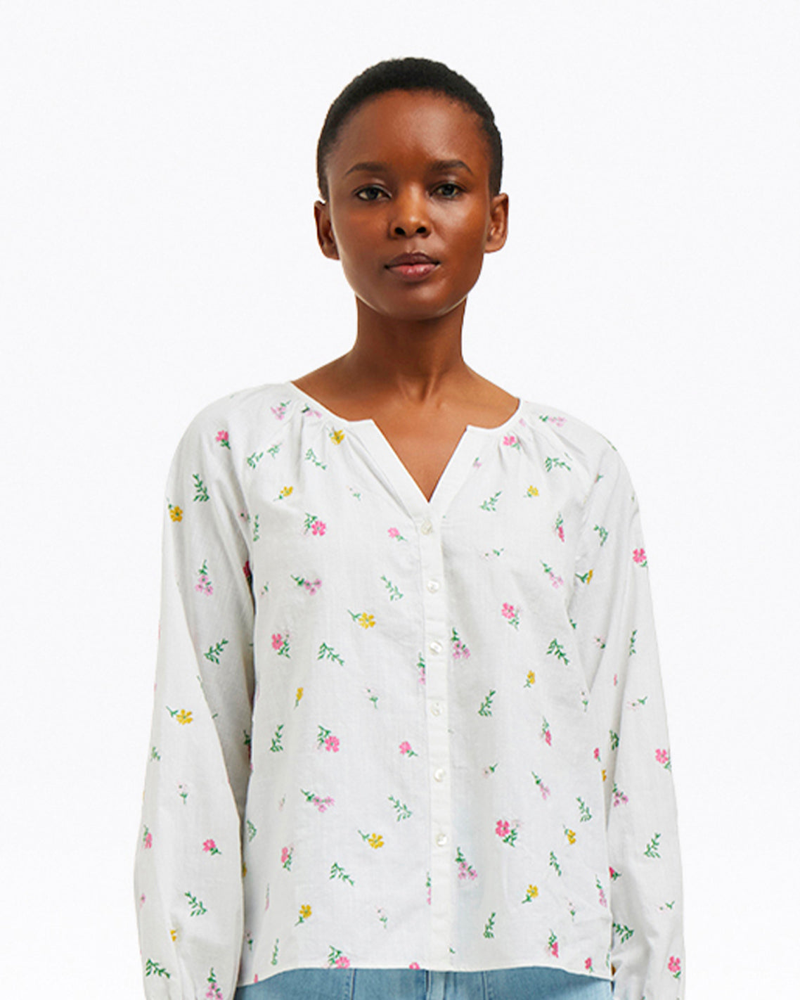 Fresh flowers. This version of our Alexandra Top is cut from an airy 100% cotton poplin and embroidered with colorful flowers. It’s a perfect piece with which to welcome (or summon) spring, and it’ll pair well with everything from shorts to jeans.