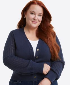 The perfect spring sweater, if we do say so ourselves. The Pointelle Sleeve Cardigan is made of 100% soft, breathable (and easy to care for) cotton. Blousy pointelle sleeves with fitted cuffs add a feminine touch, while a 5-button v-neck closure allows for a variety of styling options. Wear it buttoned up for a polished look or unbuttoned for a more relaxed vibe. A very versatile addition to your warmer weather wardrobe.