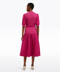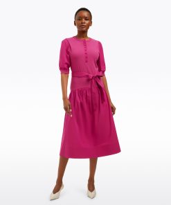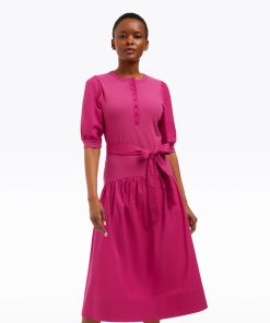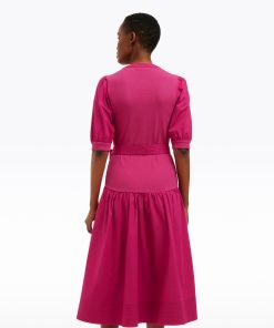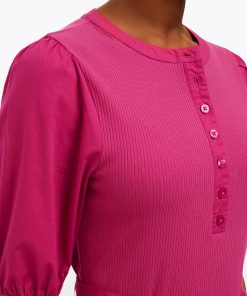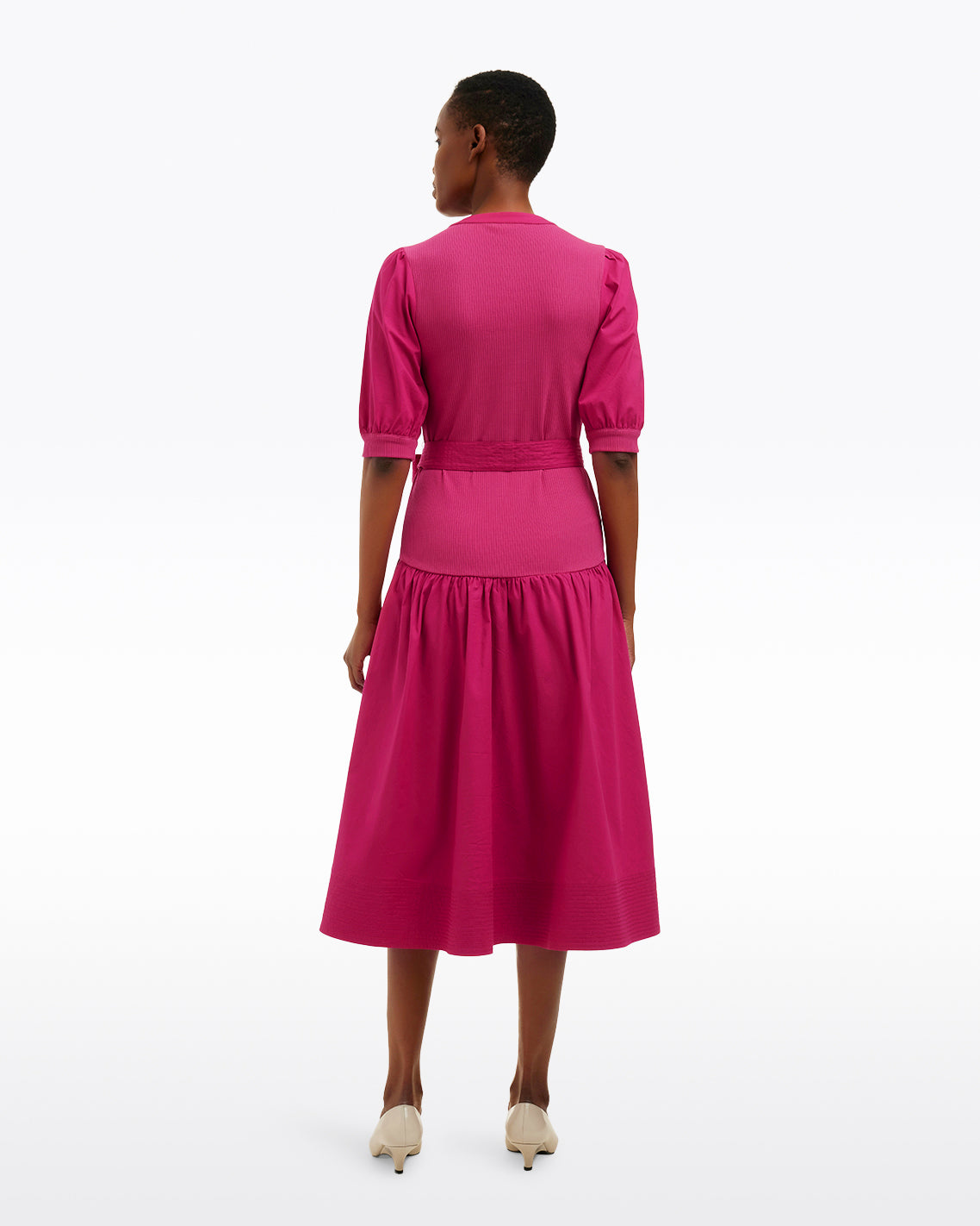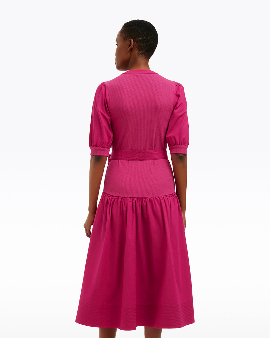 Mix things up. Our Celeste Mixed Media Dress in Raspberry Pink is constructed from a cotton-blend knit and a poplin with the perfect amount of stretch, for a comfortable, flattering fit. Finishing touches include center-front buttons and a self belt. Wear this with high heels or sandals, to parties, dinners out, even the office.