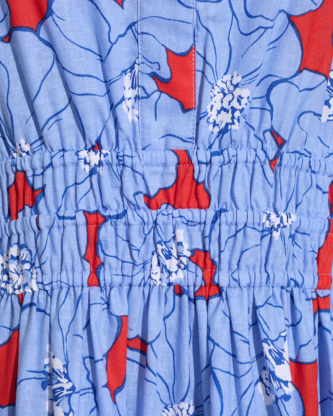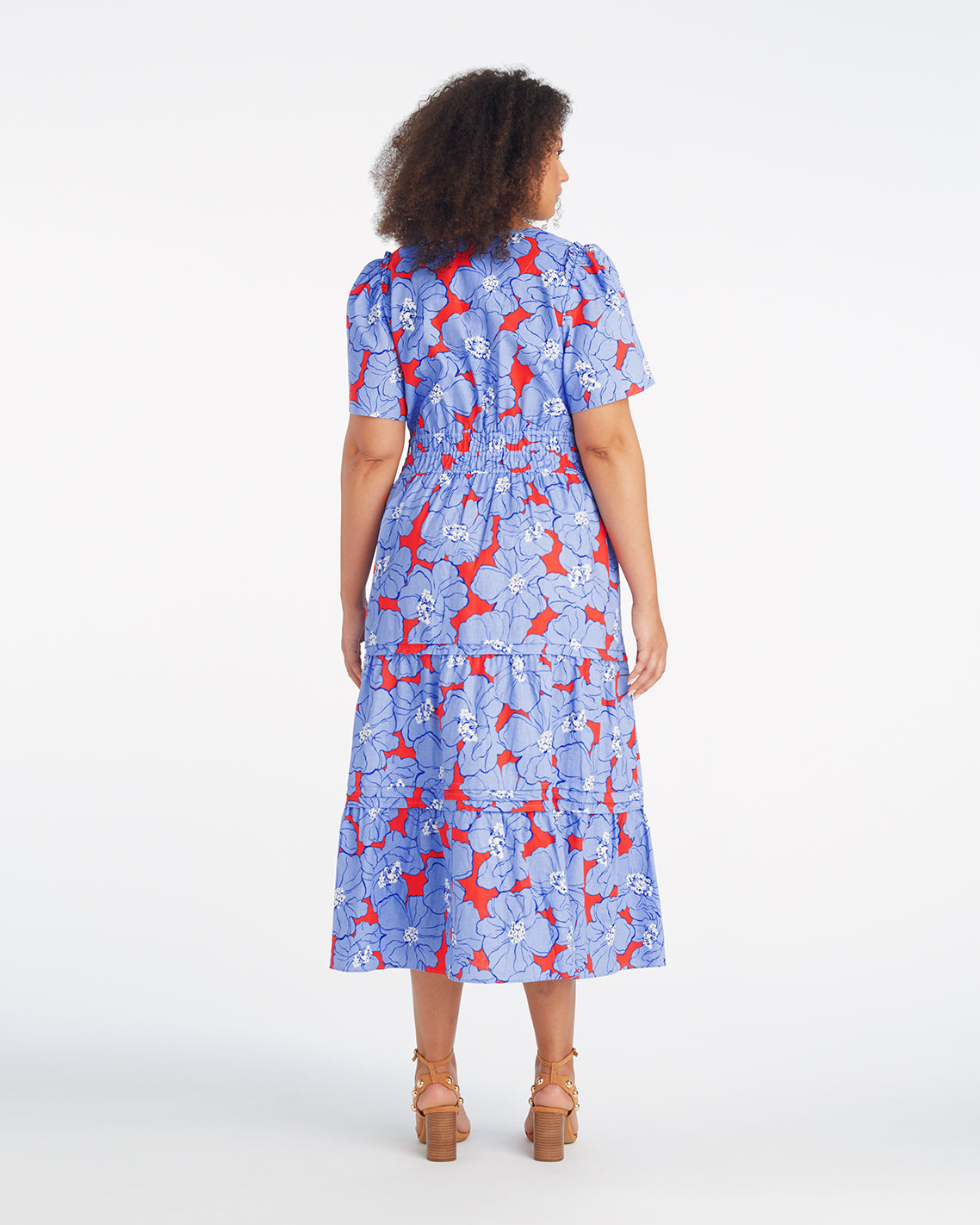 In bloom. Our Hollie Midi Dress in Floating Floral is cut from a lightweight cotton-linen blend and finished with flowing sleeves and a flattering (and comfortable) elasticated waist. Wear it to work, drinks with friends or even parties; that voluminous skirt will look great twirling on a dance floor.
