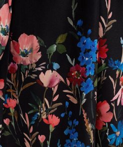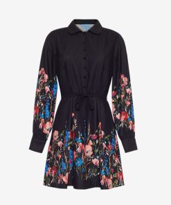 Bold blooms meet everyday ease in this feminine shirtdress. With floral cuffs and a border print that pops against classic black, it’s an effortlessly polished pick for day-to-dinner plans. The tie waist and mini length make it feel flirty yet refined.