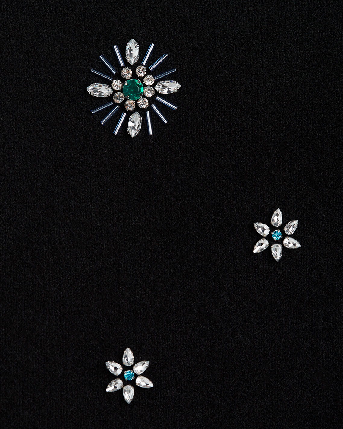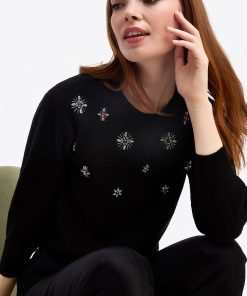 Sparkle plenty. Our Embellished Crewneck Sweater is knit from a cozy blend with the ideal amount of stretch and decorated with colorful gems, for a festive look that’s perfect for the holidays. Pair it with your favorite black pants or jeans and you’re ready to party!