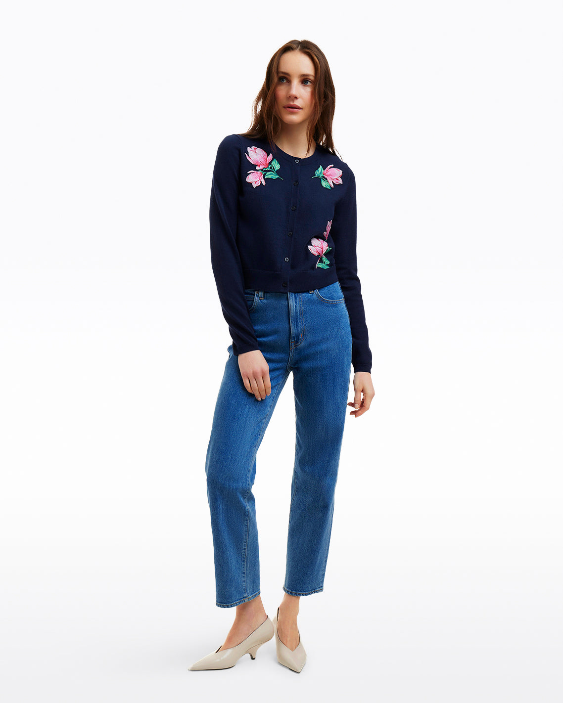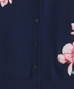 Spring flowers. Our Embroidered Crewneck Cardigan is knit from a soft cotton-wool blend and decorated with embroidered blossoms on the front. The overall look is uplifting but still polished, and a perfect match for your favorite jeans or pants.