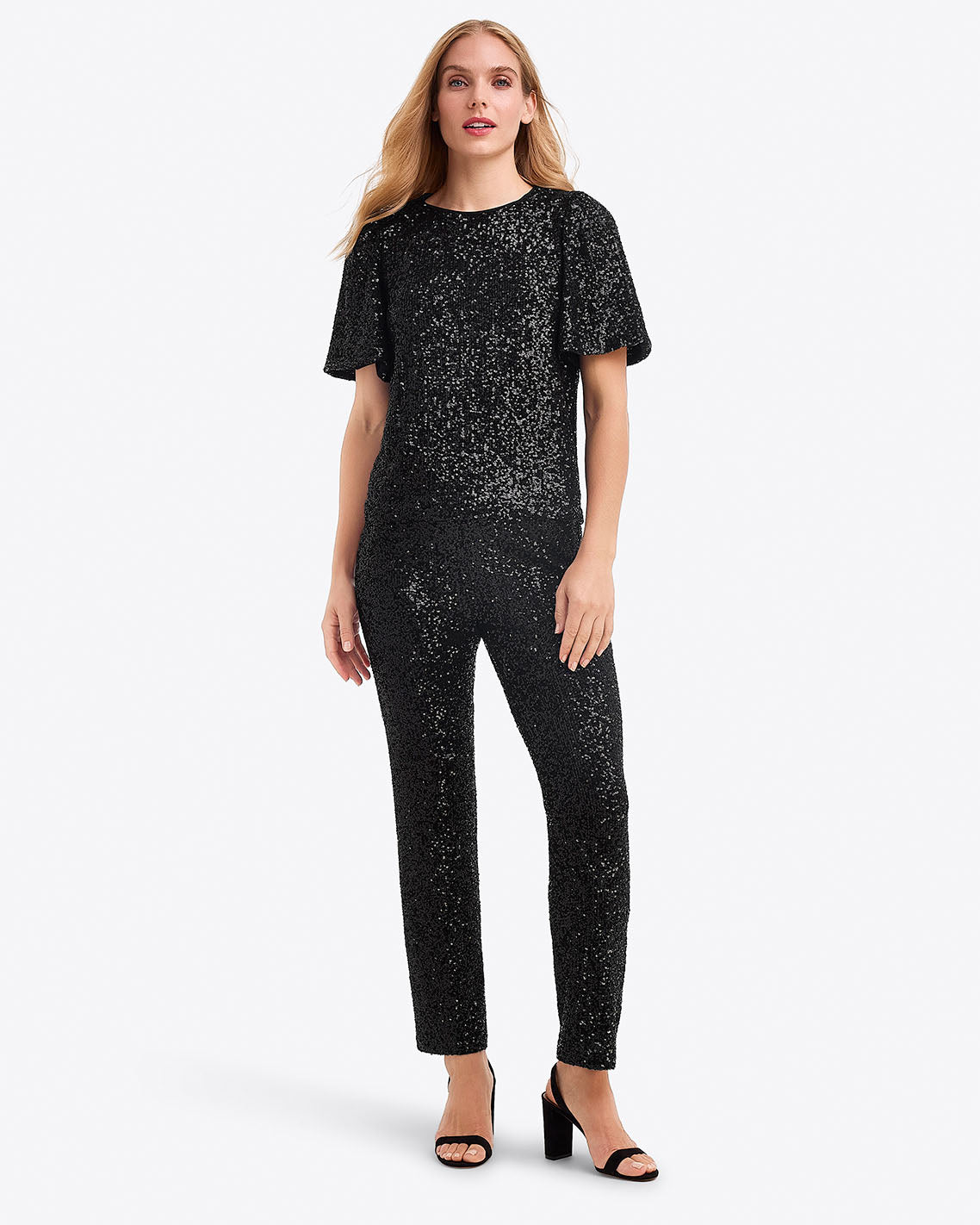 Sparkle plenty. Our Flutter Sleeve Top in Sequin boasts a decidedly party-ready vibe. Pair it with your favorite jeans (or our matching pants) for your next big holiday event!