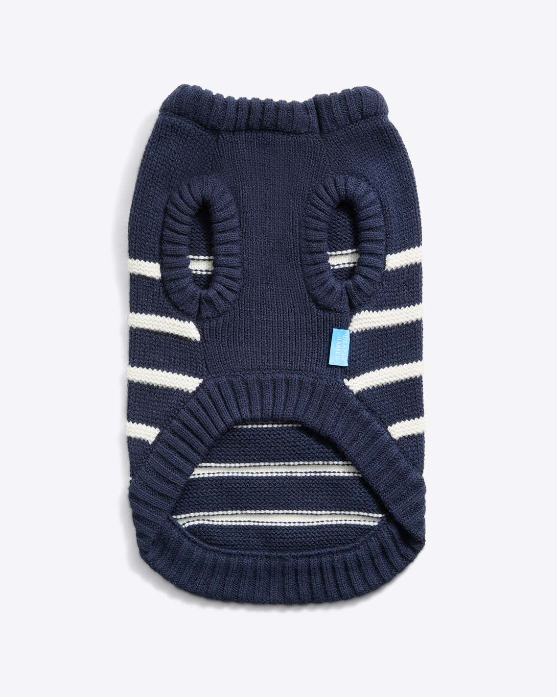 For the dogs: Our new collection of pet gear allows your pup to look almost as stylish as you do. Case in point, our Dog Sweater, in chic navy and cream stripes and finished with shiny buttons. Totes fetching!