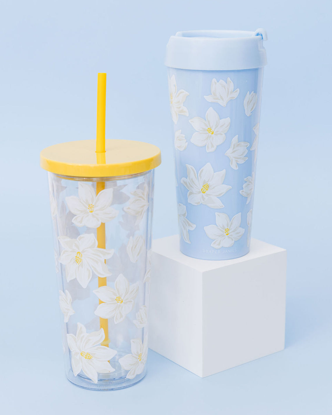 Take your caffeine fix with you on the go, in style, with this magnolia-printed thermal mug! Your drink will stay the perfect temperature all day long and the spill-resistant lid will make this your new favorite travel companion.