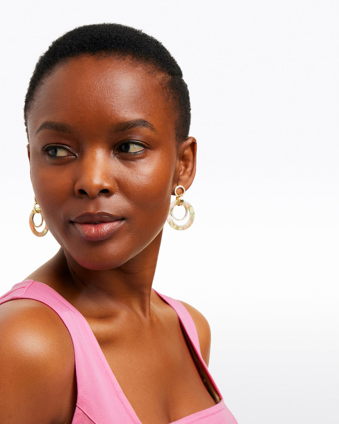 Bold type? You’ll love our Jade Rose Acetate Hoops, which feature chic pink-and-green acetate circles mixed with brass and stones. The result is a cool, modern look that’ll go with everything from T-shirts to button-downs to dresses.
