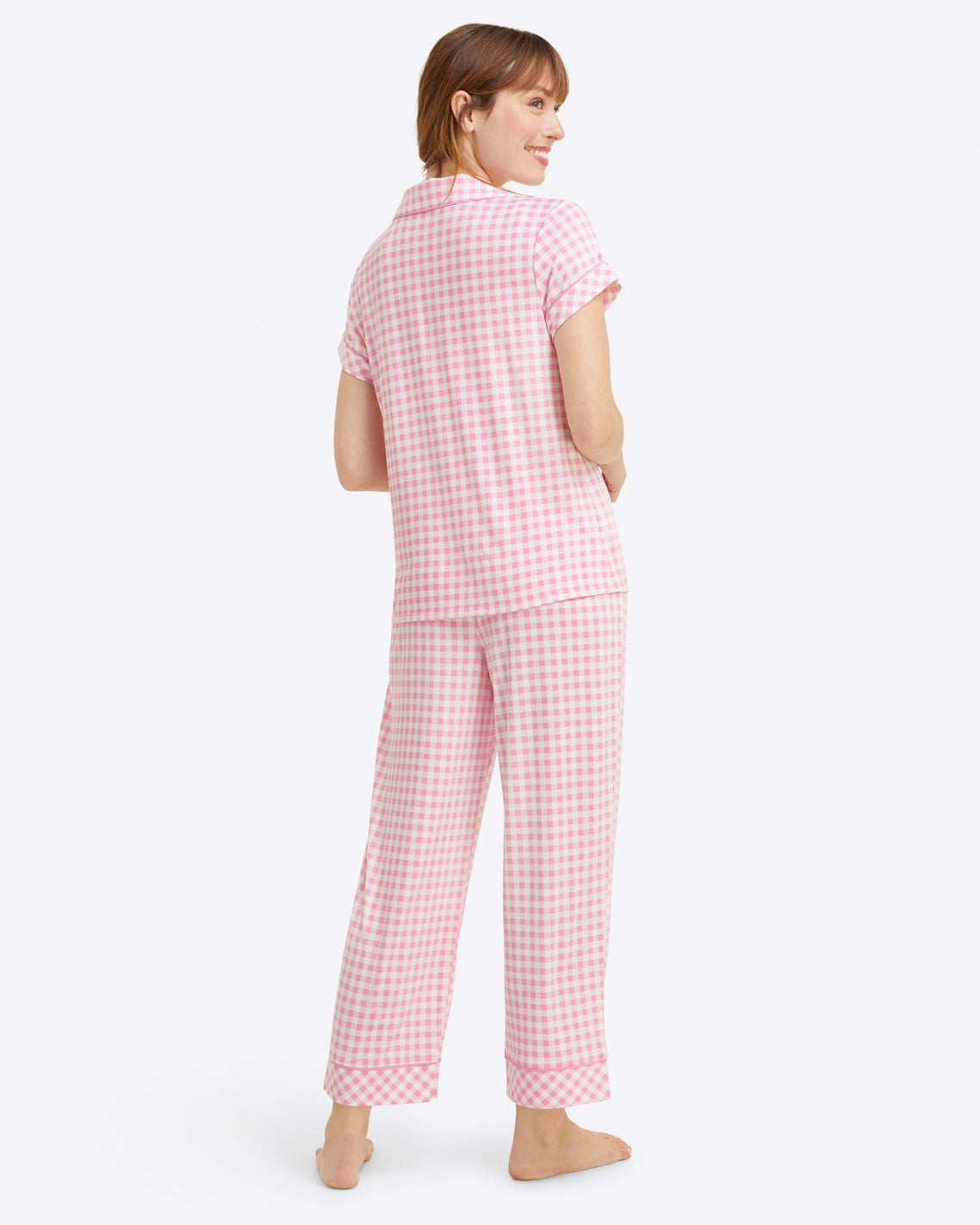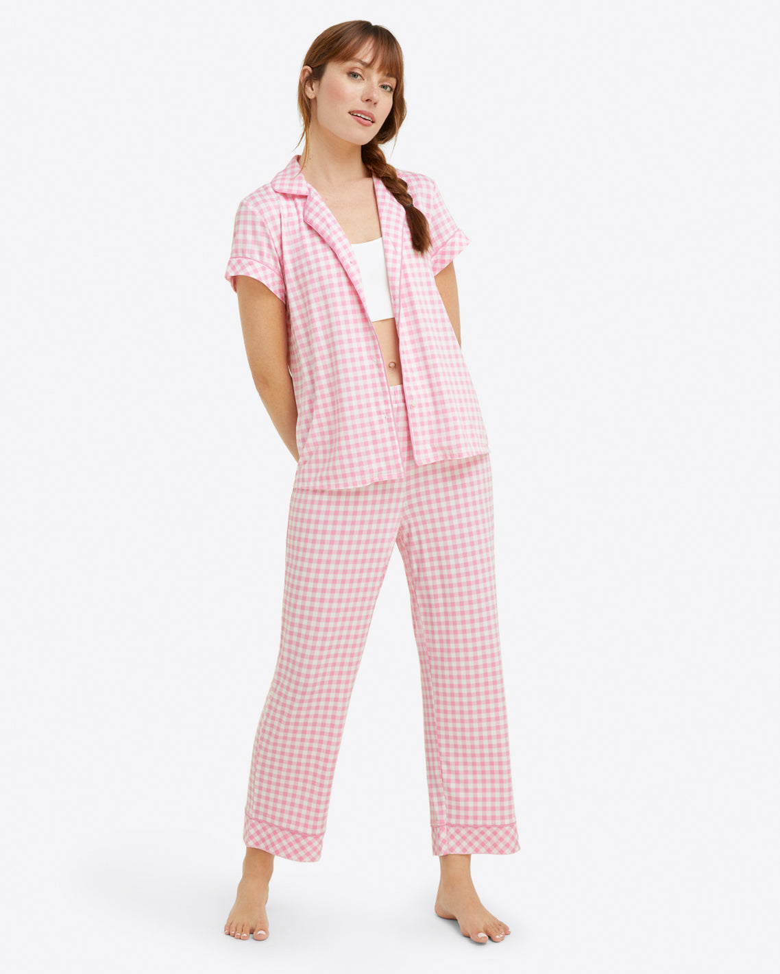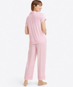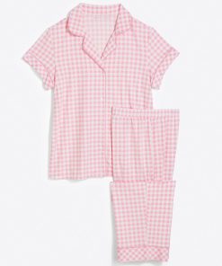 Sleep time never looked so chic. The Linda Pajama Set in Gingham is as comfortable as it is pretty. Constructed from a lush luxe knit, this fabric feels ultra soft and buttery to the touch. Designed with a relaxed fit, this two-piece set features a vibrant pink gingham print, functional buttons, and a stretchy elastic waistband. Cue up your streaming service and get ready to snuggle for hours on end.