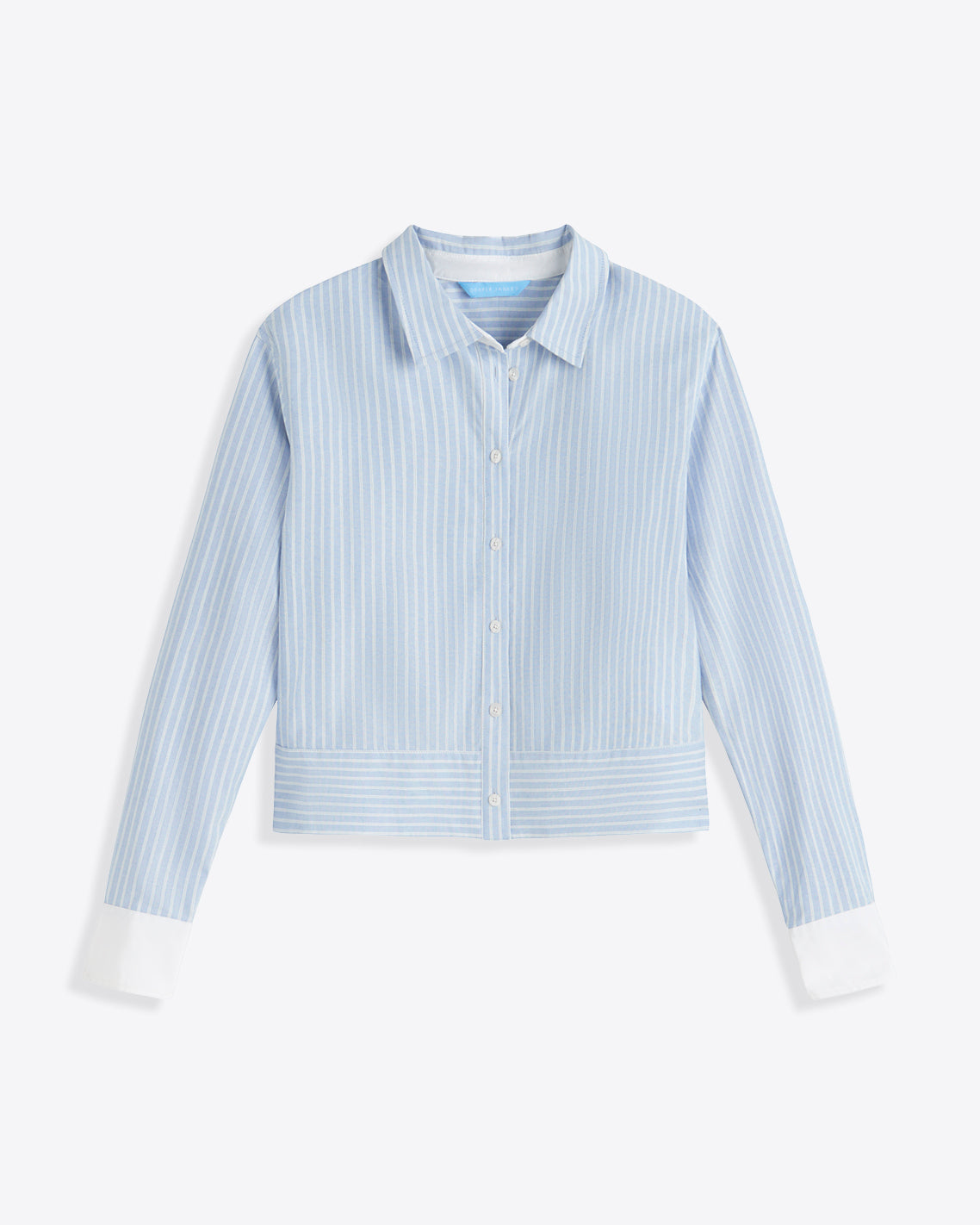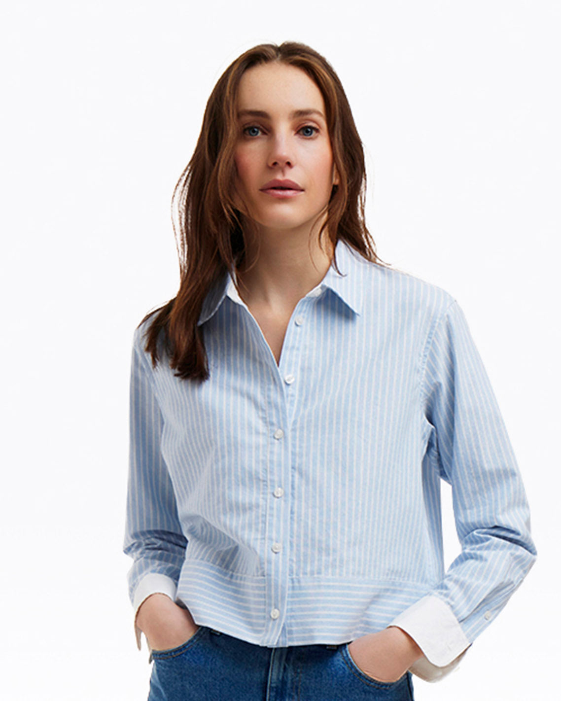 Button things up. Our Long Sleeve Cropped Button Down in Oxford Shirting is a stylish update to the typical Oxford. Wear it with everything from jeans to skirts for a cute, office-friendly vibe.