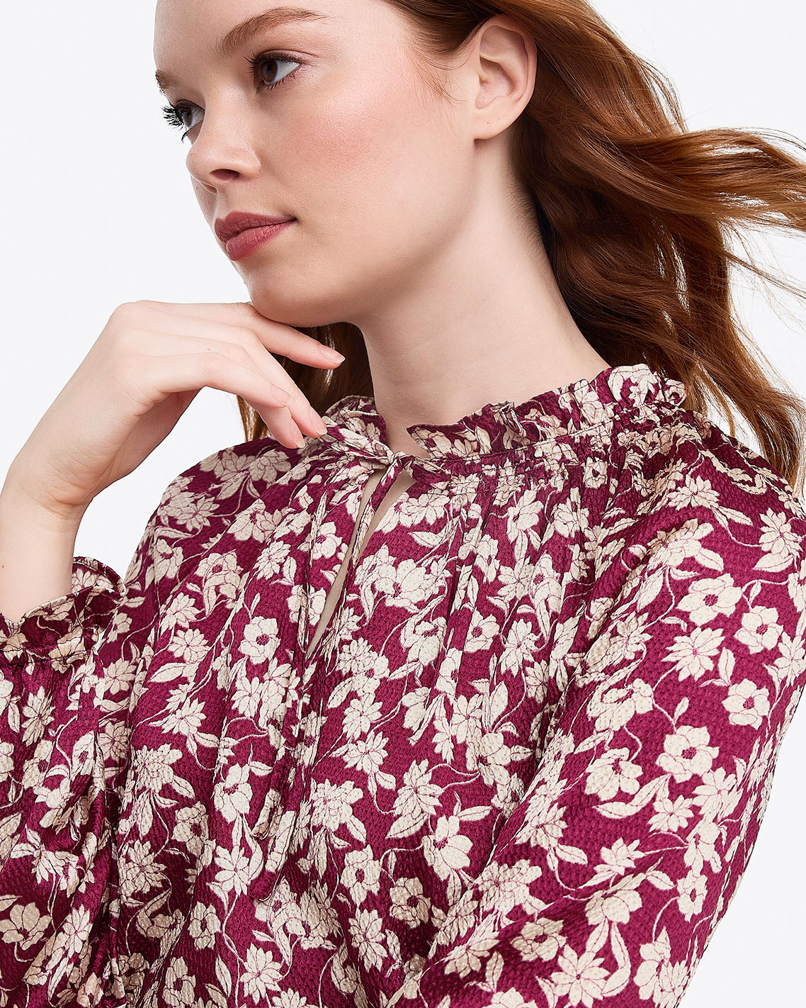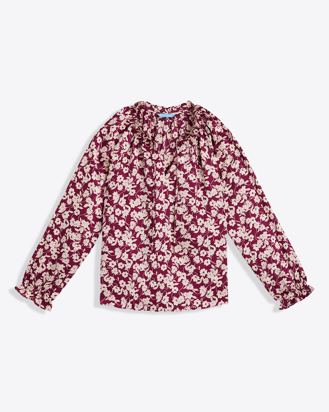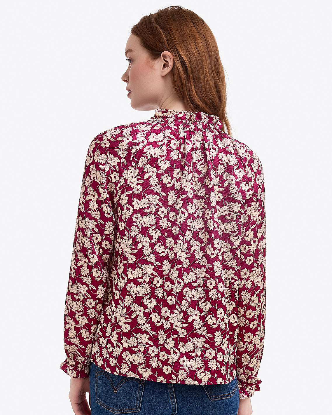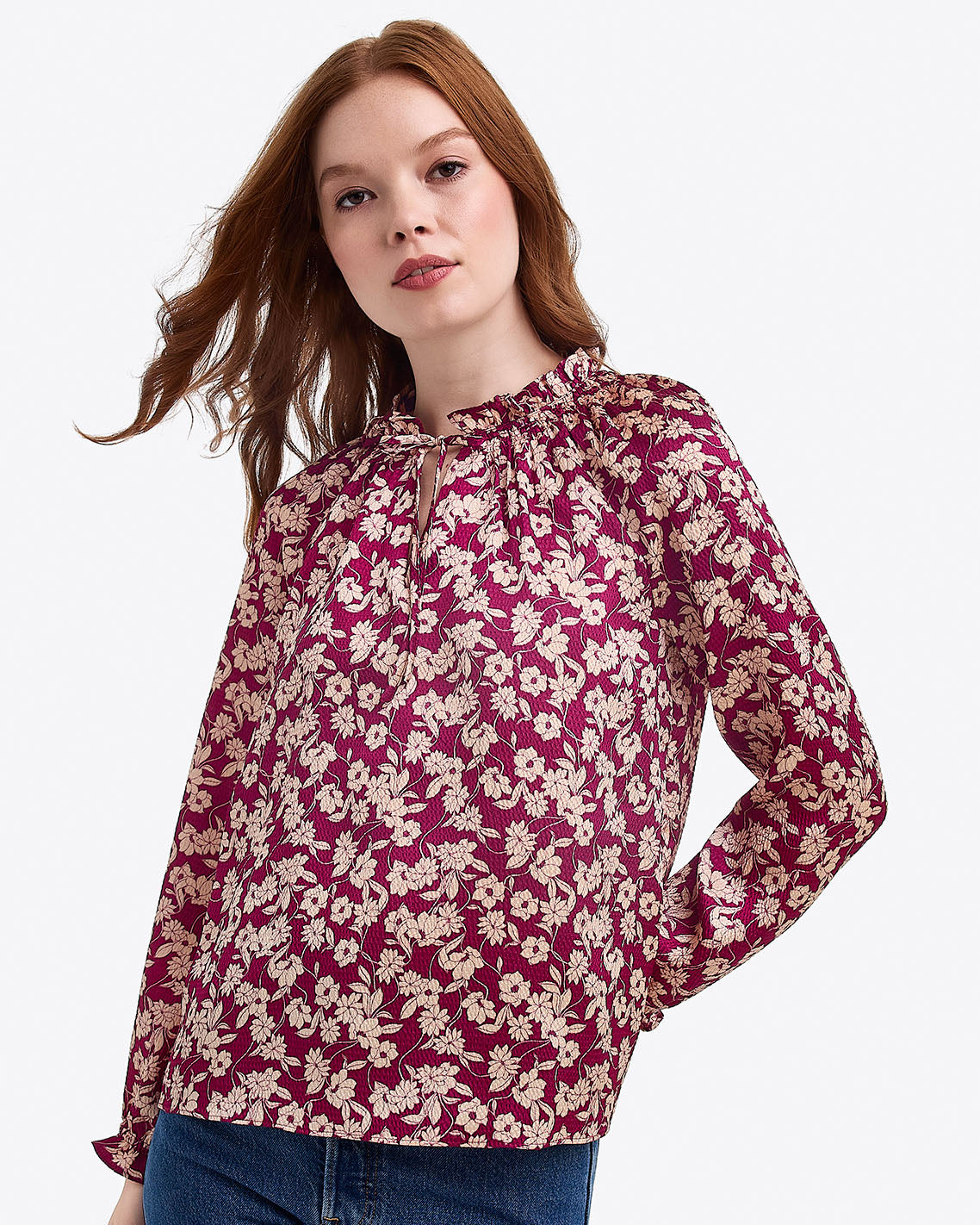 Easy does it. Our Long Sleeve Top is cut from a printed hammered satin and finished with a keyhole neckline that you can tie or leave open, depending on your mood. Either way it’ll look great over your favorite jeans and a pair of clogs or sandals!