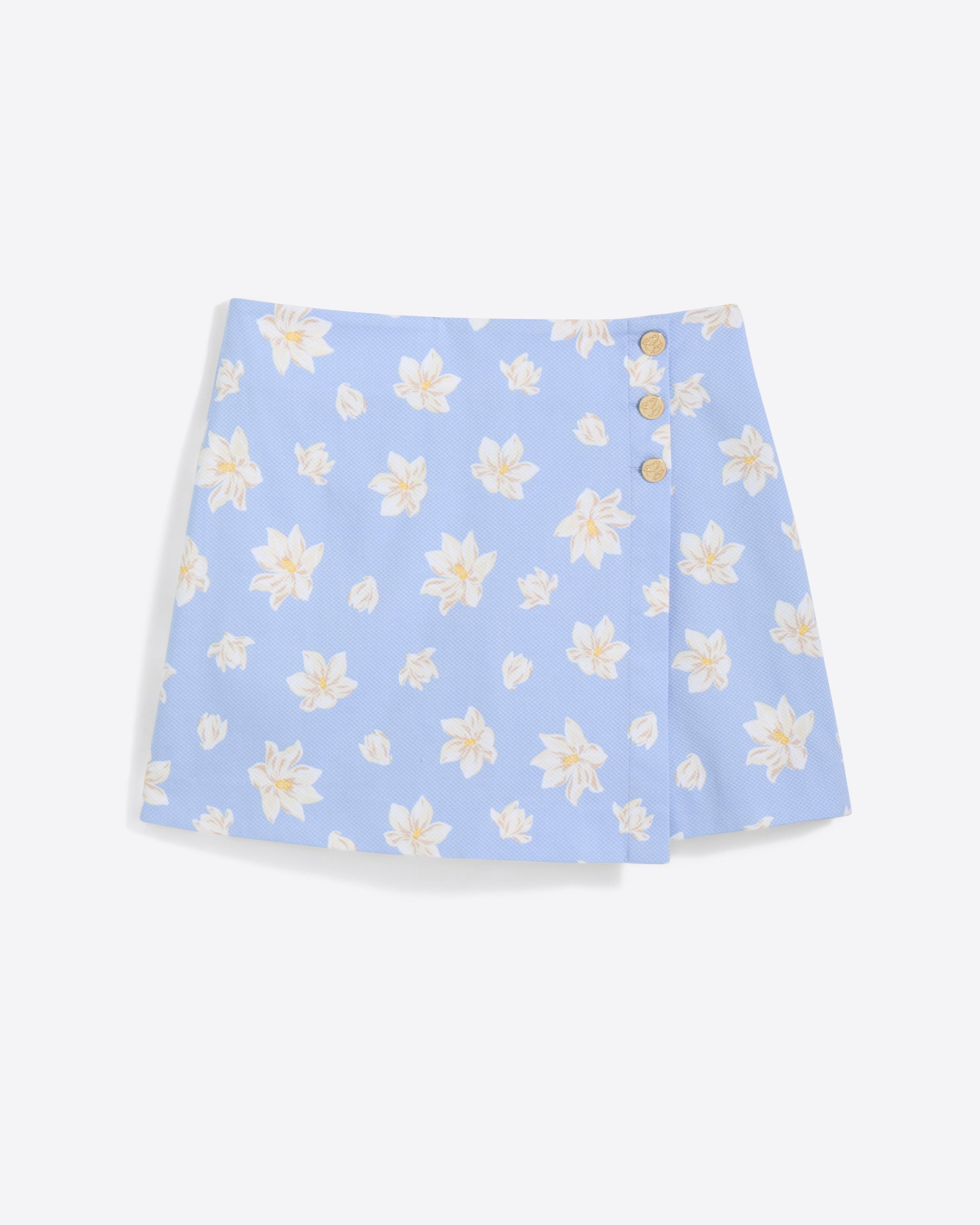 Pique some interest. Our Mini Wrap Skort is made from magnolia-printed cotton pique with the perfect amount of stretch and finished with a wrap front and Draper James logo buttons, for a look that’s equal parts sporty and cute.