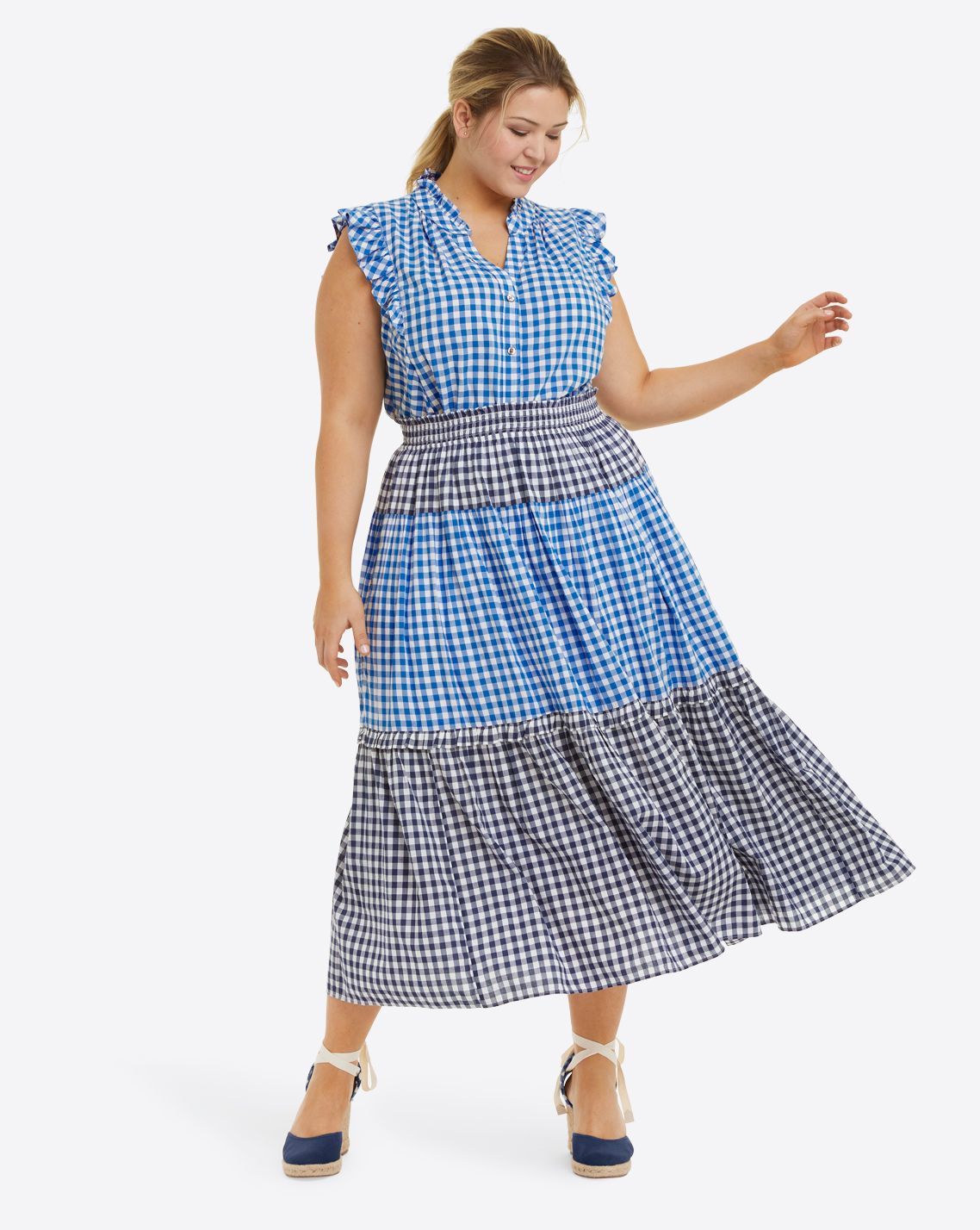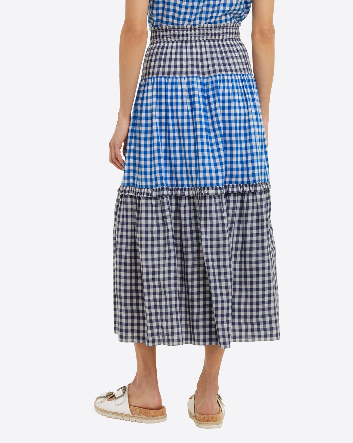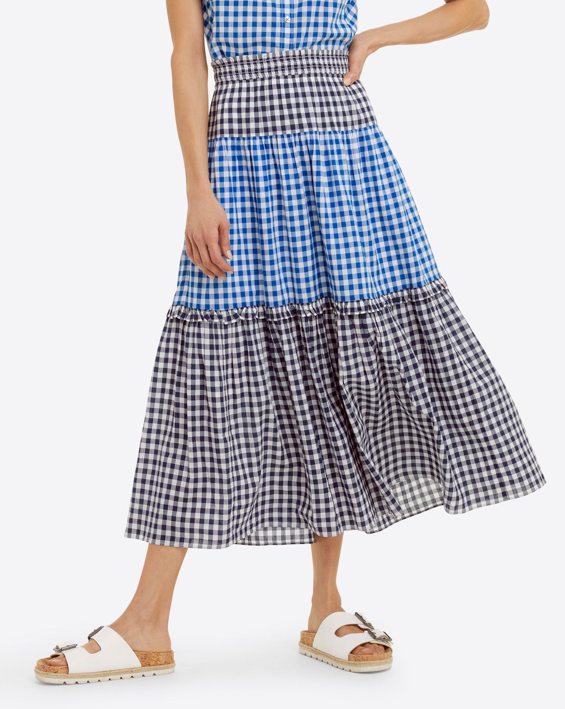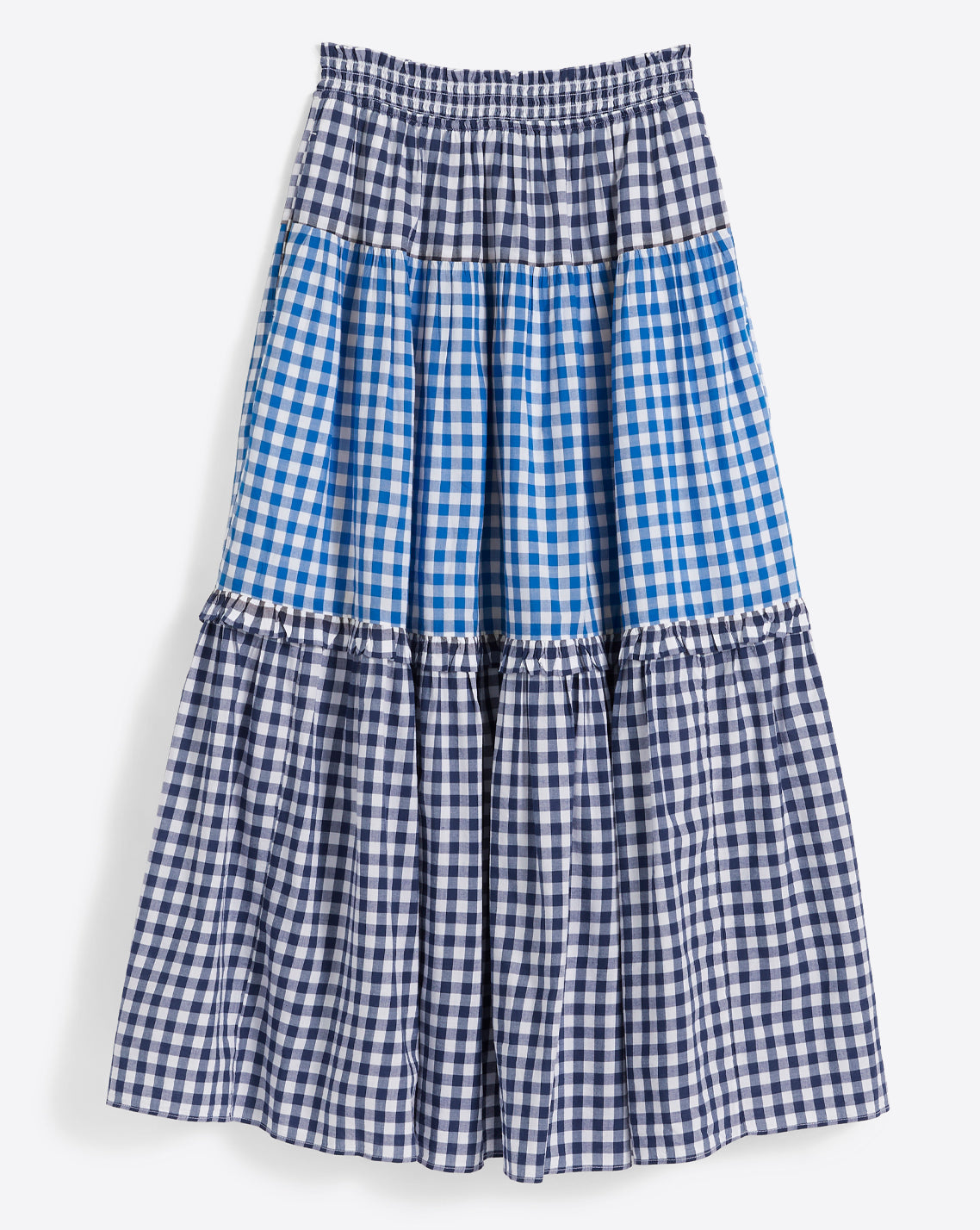 Tiers of joy. Cut from a crisp cotton blend, the Peasant Skirt in Multi Gingham is the perfect wear-anywhere skirt. Designed for movement, this skirt features a mixed gingham print along it’s tiered body and an adjustable drawstring, allowing for ease of fit at the waist. Tuck in or out of your favorite blouse or layer with the matching top for a polished head-to-toe look.