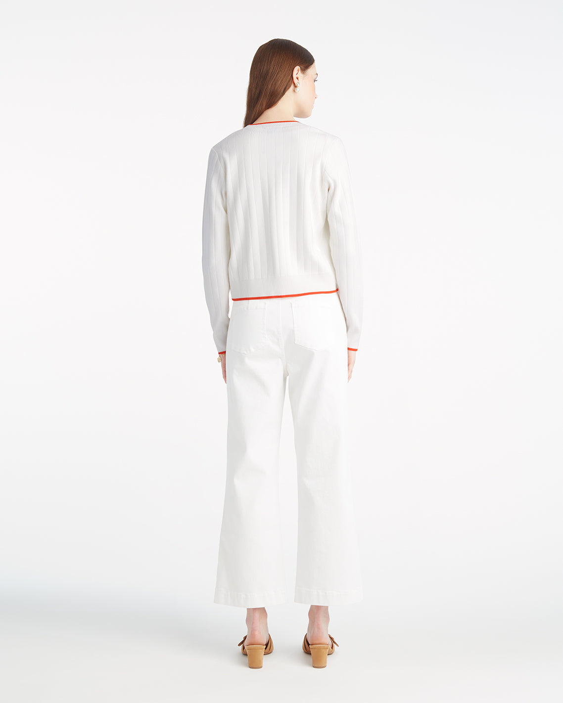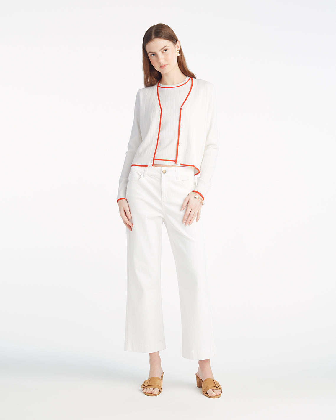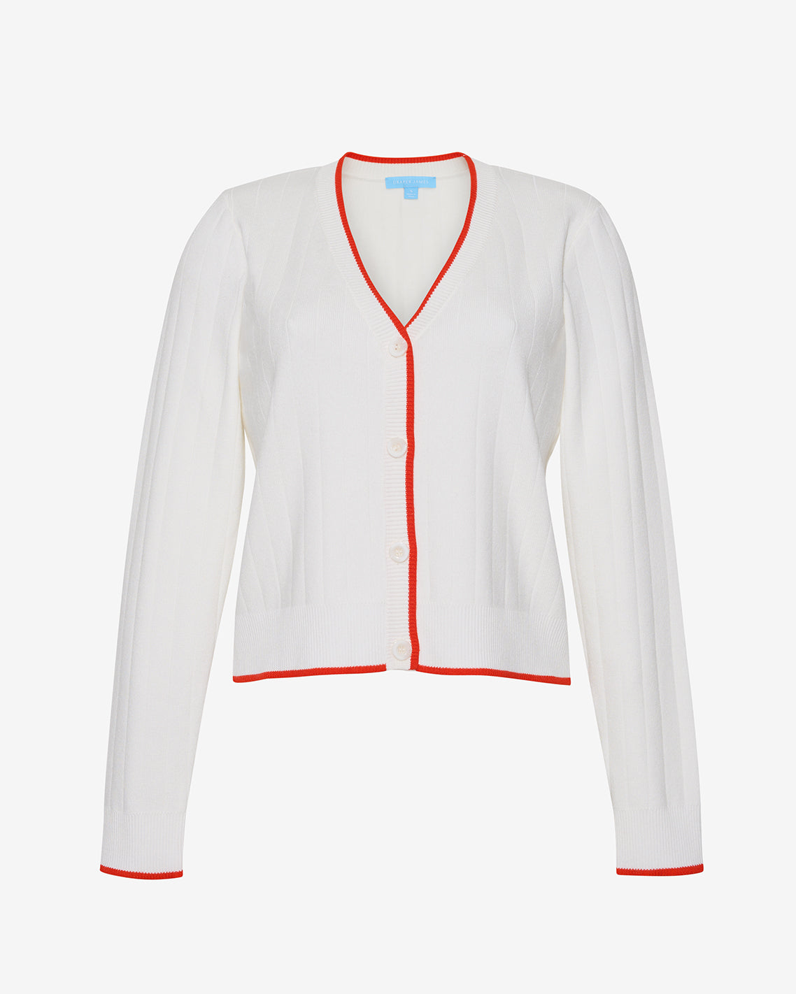 Pipe up. Our Piped Cardigan is an ideal summer layer, lightweight and easy yet still chic. It’s a must-have for battling overzealous air-conditioning, whether at the office, the movies or a restaurant; wear it with dresses, jeans and t-shirts or our matching Sweater Tank.