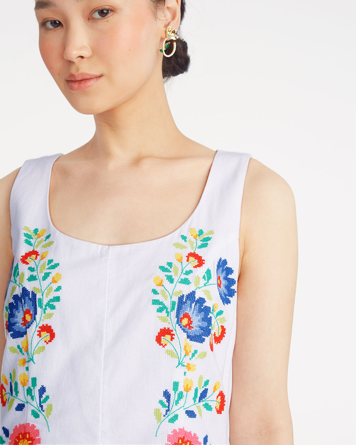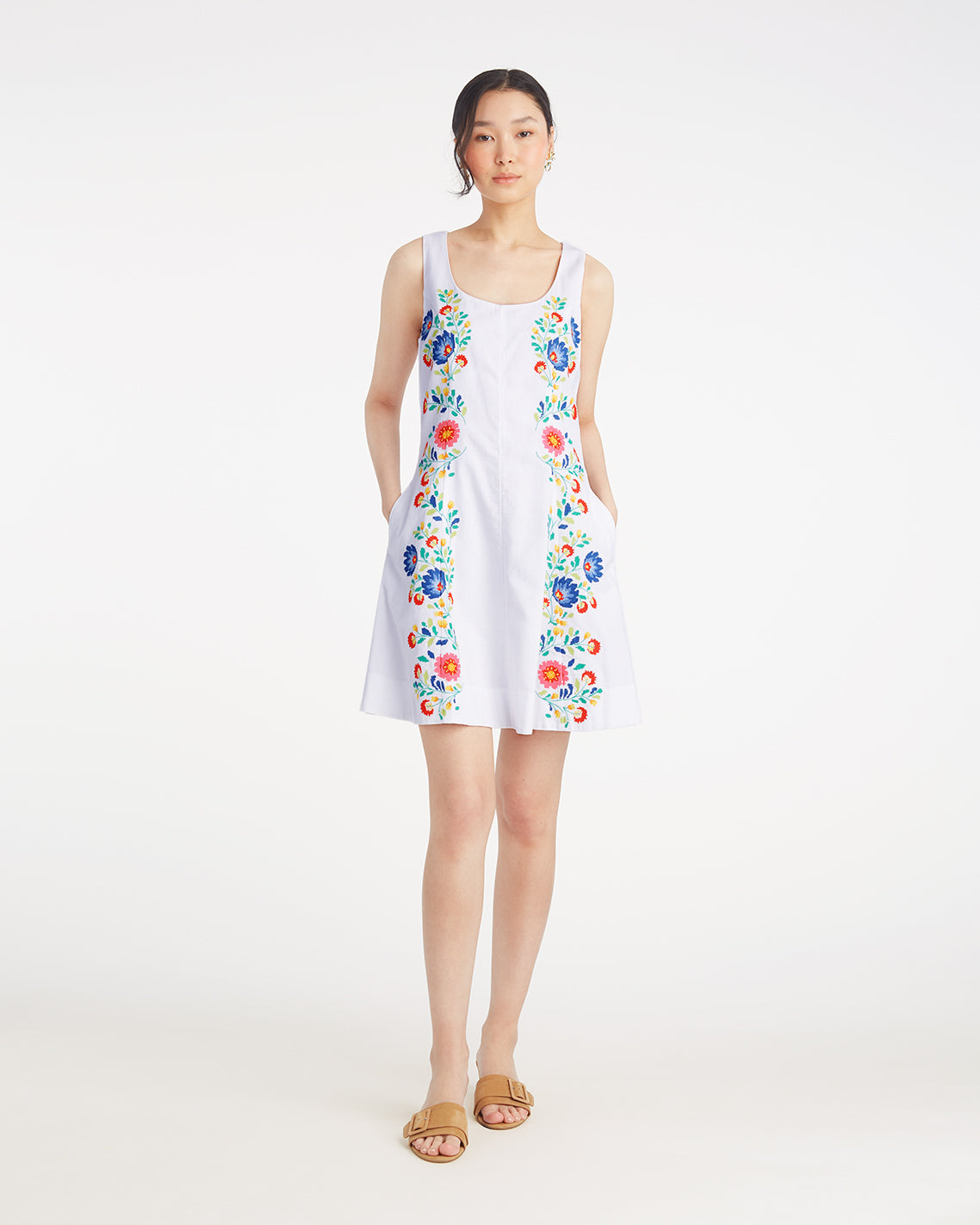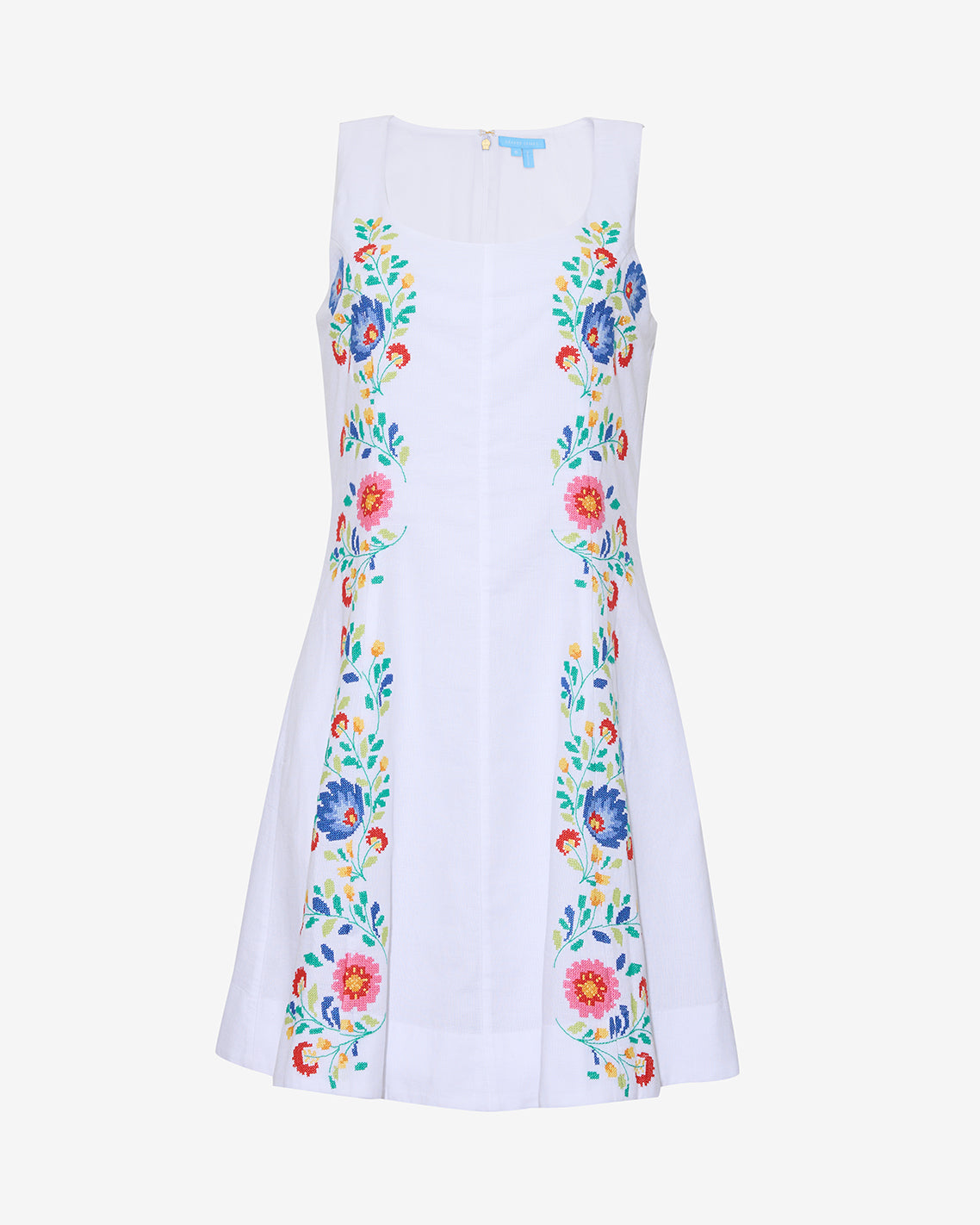 Nice threads. Our Primrose Mini Dress with Floral Embroidery is made from 100% cotton and finished with a bouquet’s worth of colorful embroidered blossoms. Wear it to your next garden party, barbecue, drinks or dinner.