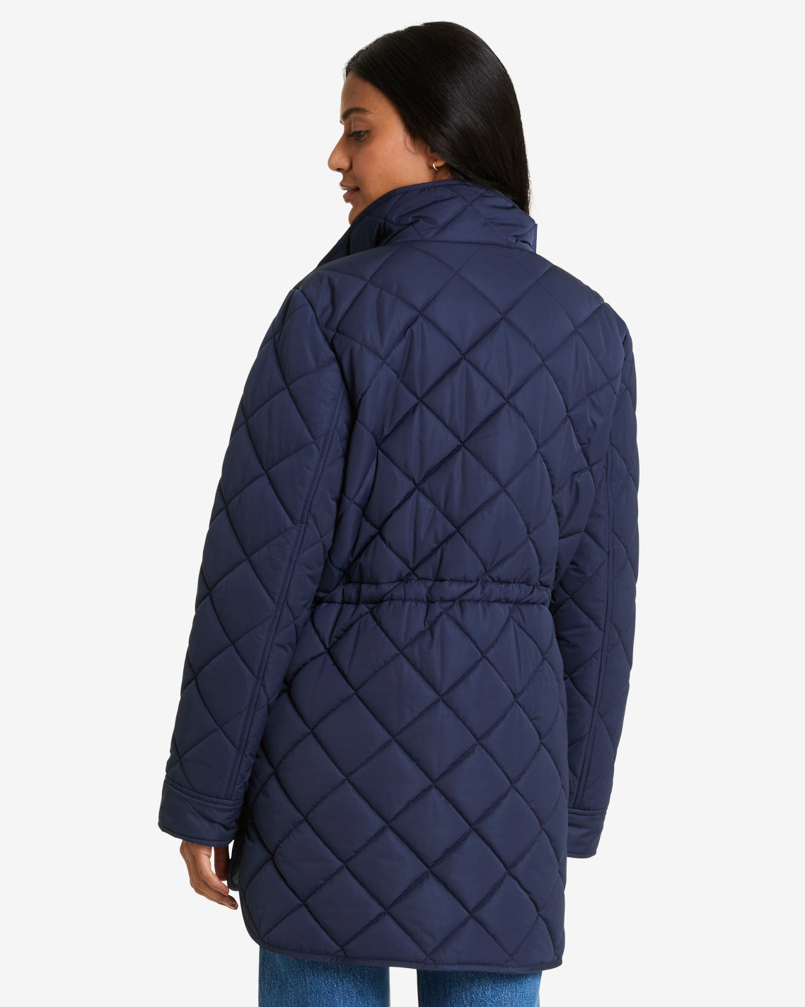 Warm it up. Our take on the Quilted Coat features a longer silhouette and a stand-up collar. It’s cozy, of course, but also surprisingly stylish, and will look good with all of your favorite pants, skirts, jeans and even dresses.