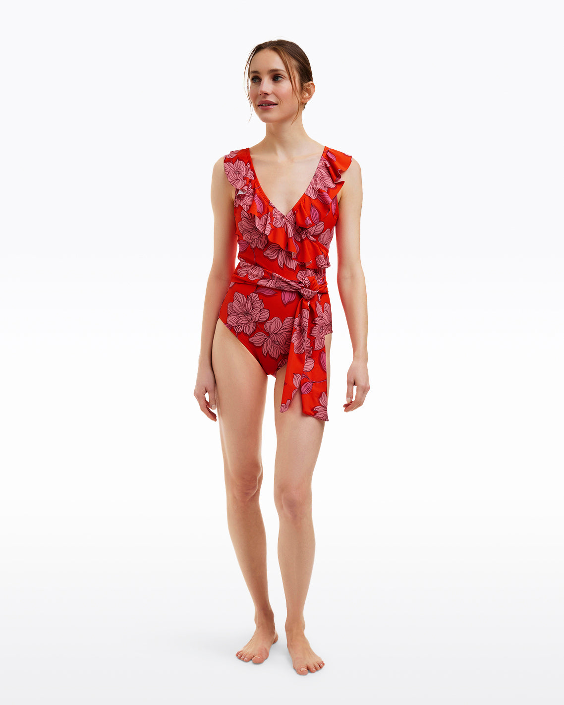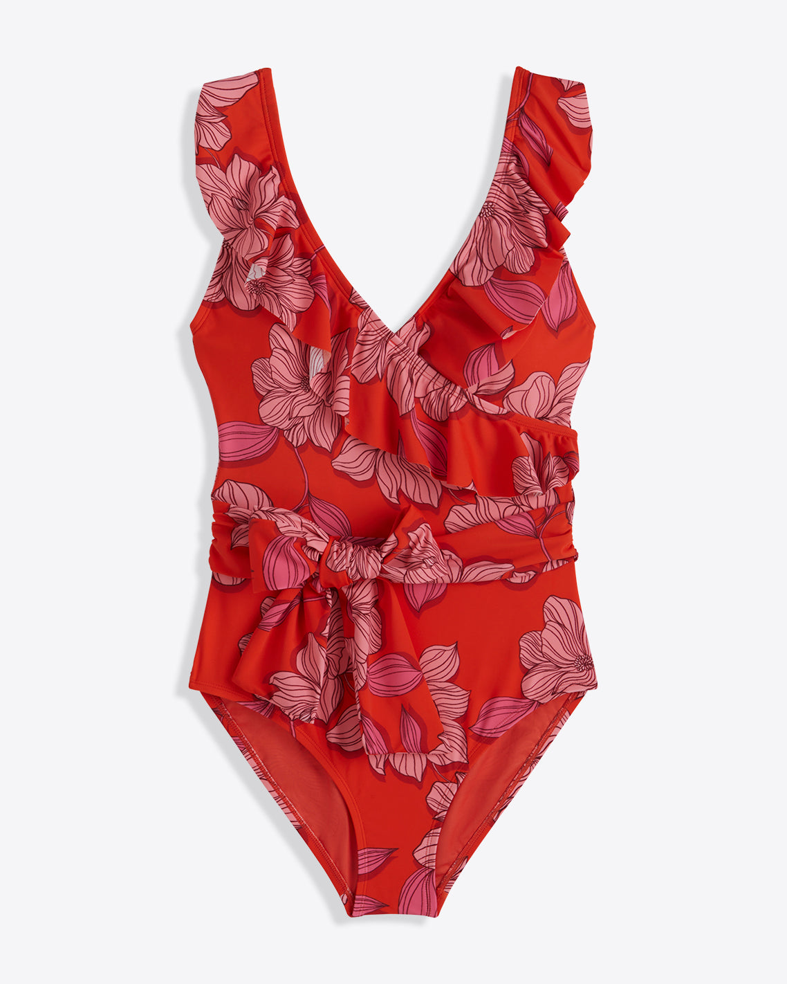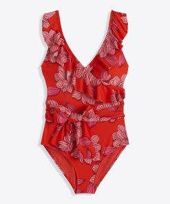 Draper James Women’s Red Magnolia Ruffle One Piece With Belt | Red Magnolia