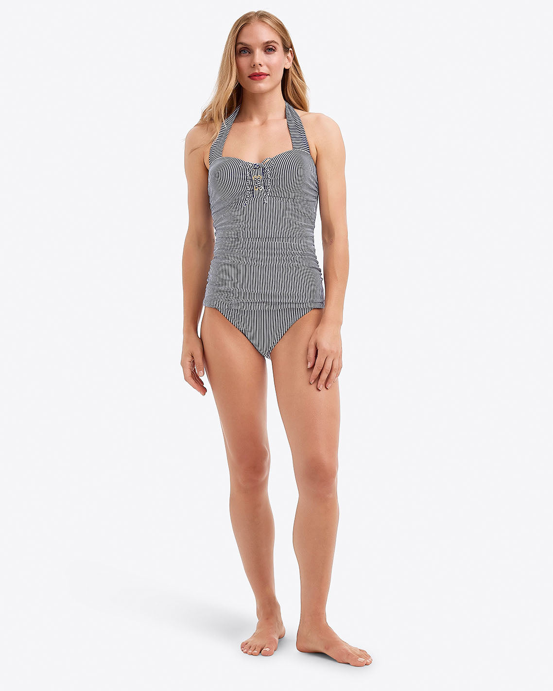 Make a splash. Our Seersucker Halter Bandeau Tankini top offers support and style in equal measures (and pairs perfectly with our matching Seersucker High Waist Bottom).