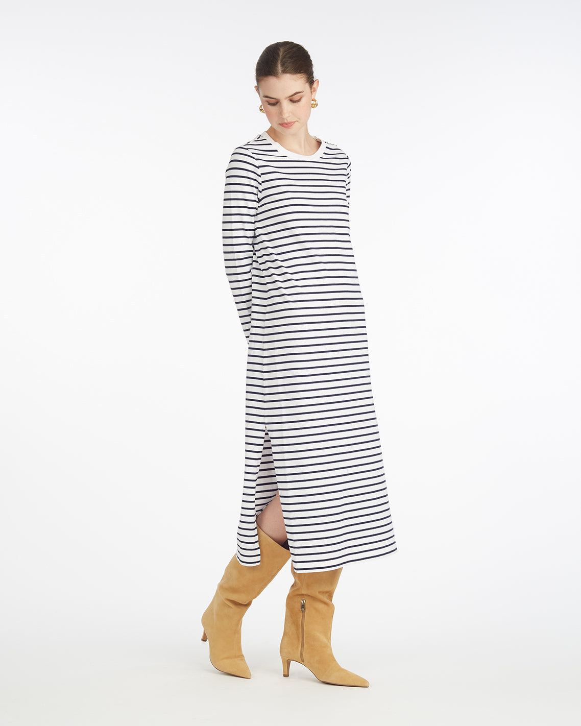 Draper James Women’s Sheryl Long Sleeve Dress In Cotton | White Nautical Stripe
