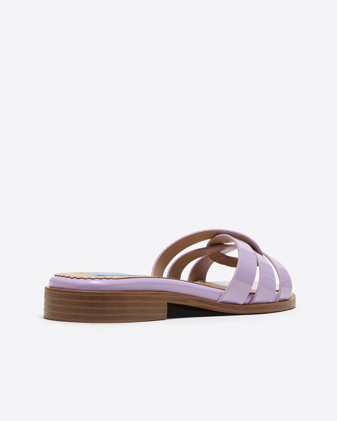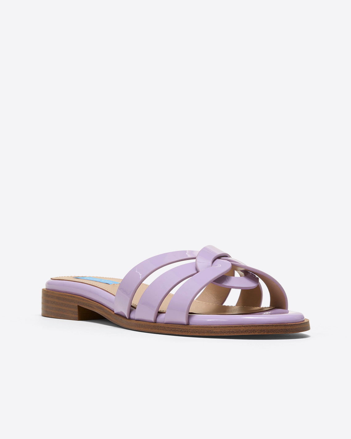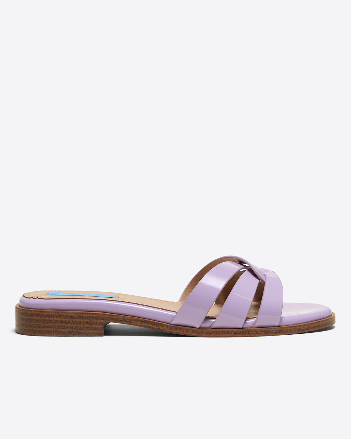 Our Andy Sandals are made from lavender patent leather, with a subtle sliver wedge for a little extra lift. Wear them with everything from jeans to sundresses all spring and summer long.