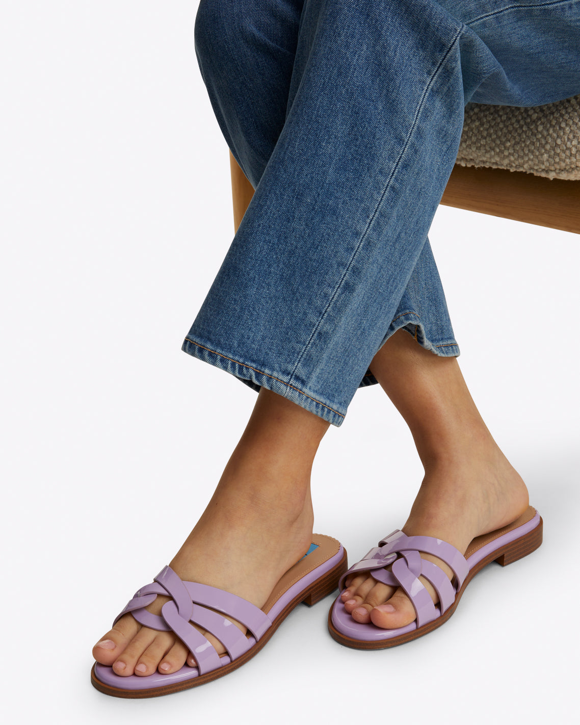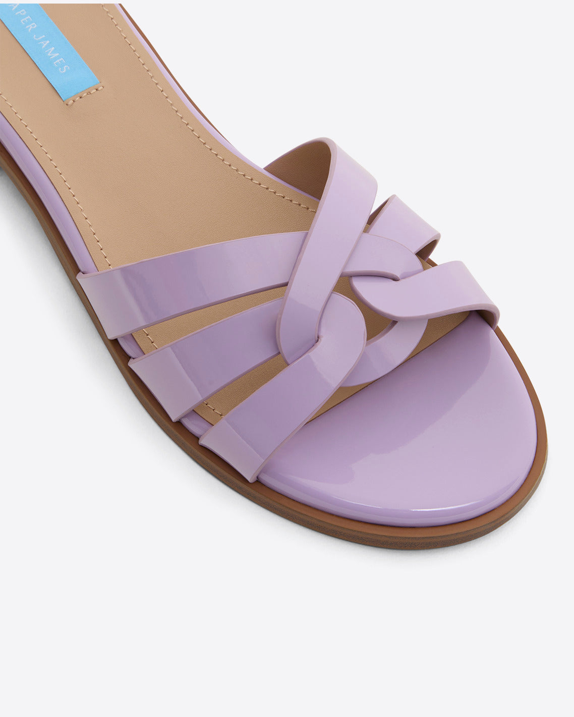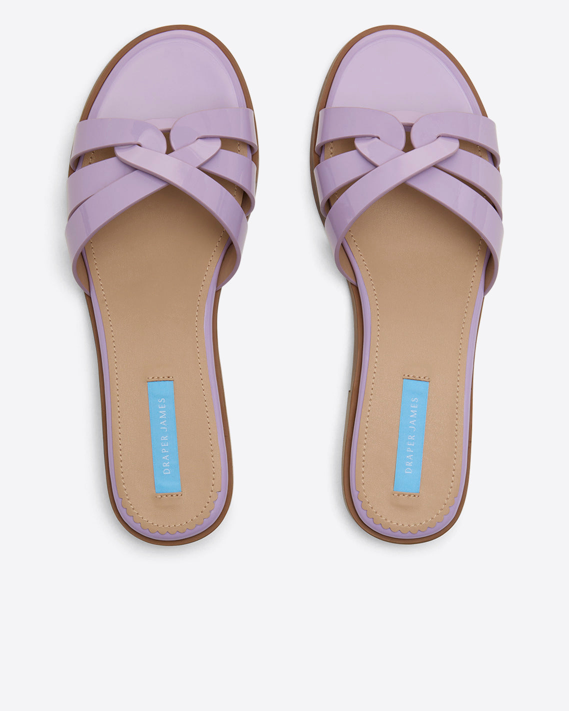 Our Andy Sandals are made from lavender patent leather, with a subtle sliver wedge for a little extra lift. Wear them with everything from jeans to sundresses all spring and summer long.