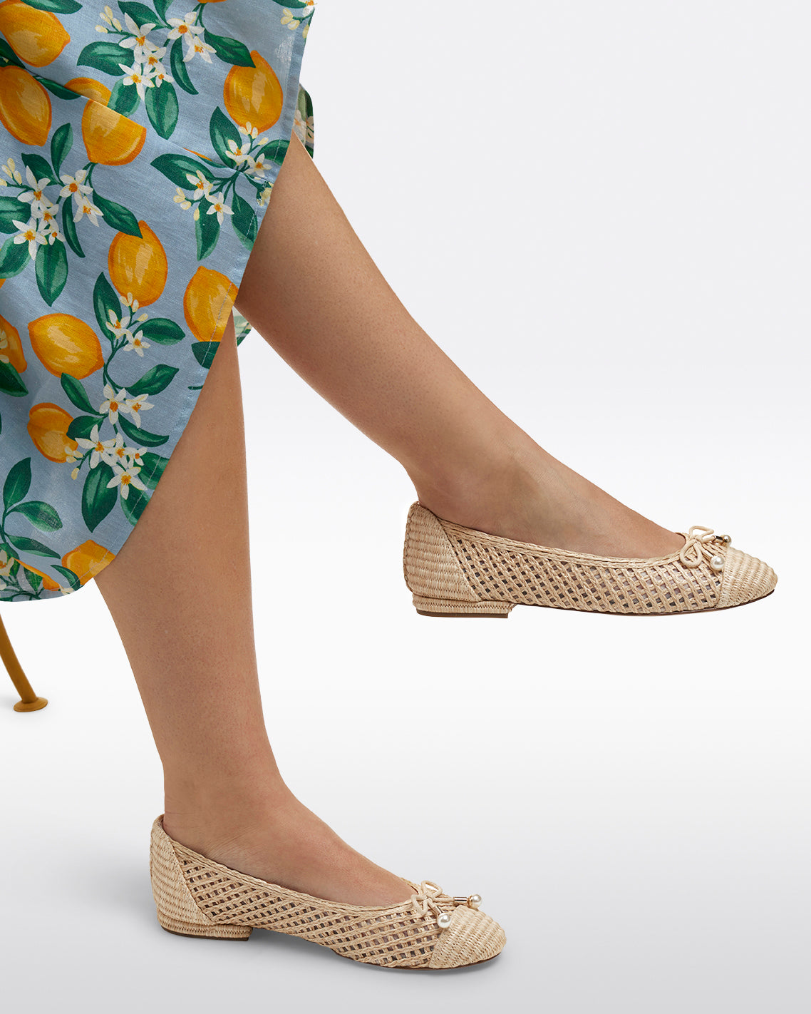 Easy breezy. Constructed from sturdy faux raffia and finished with a pointy cap toe, our Eloise Ballet Flats are a warm-weather must-have. They’ll add a beachy vibe to your favorite jeans and pair perfectly with your favorite spring and summer skirts and dresses.