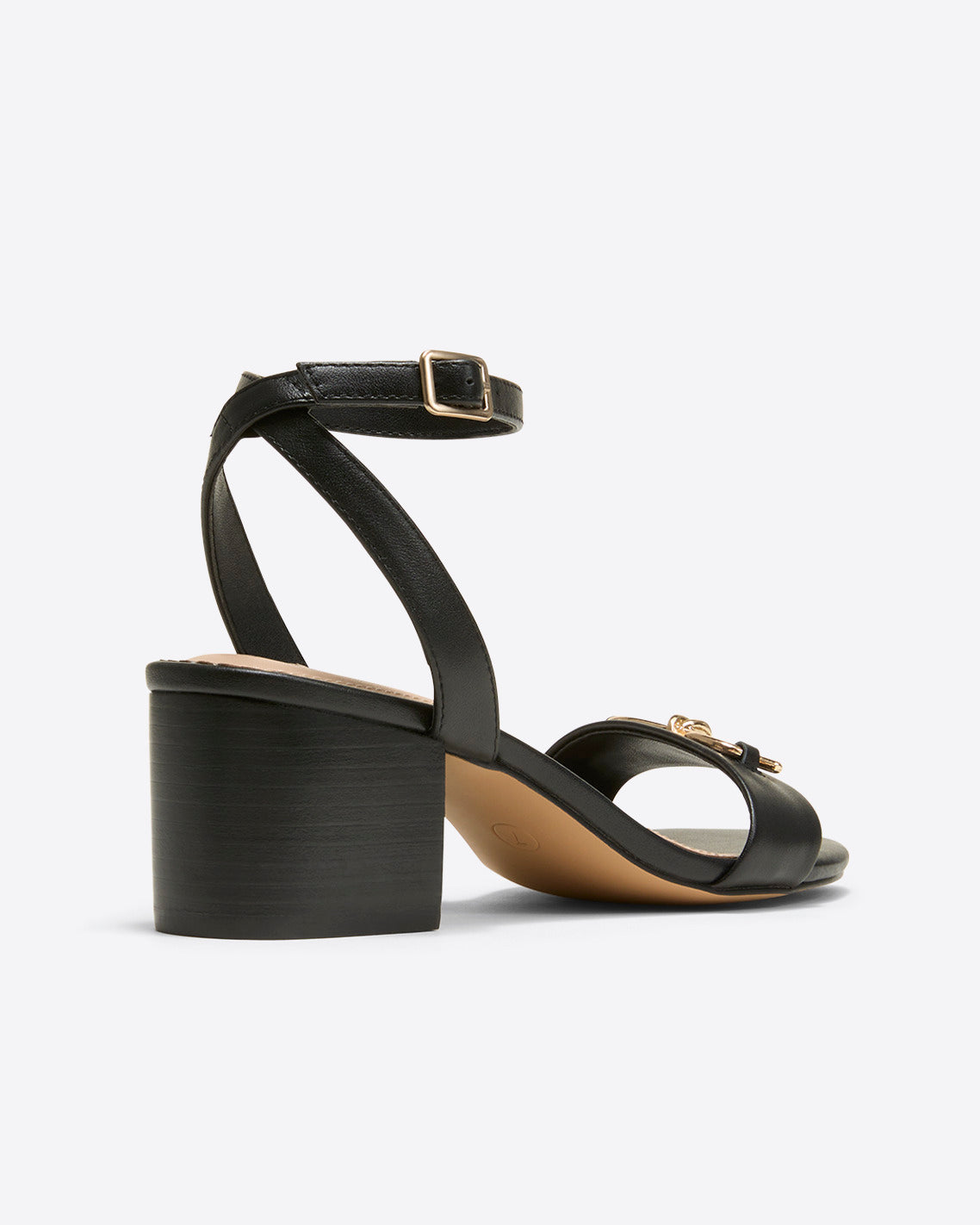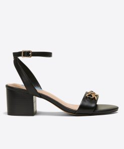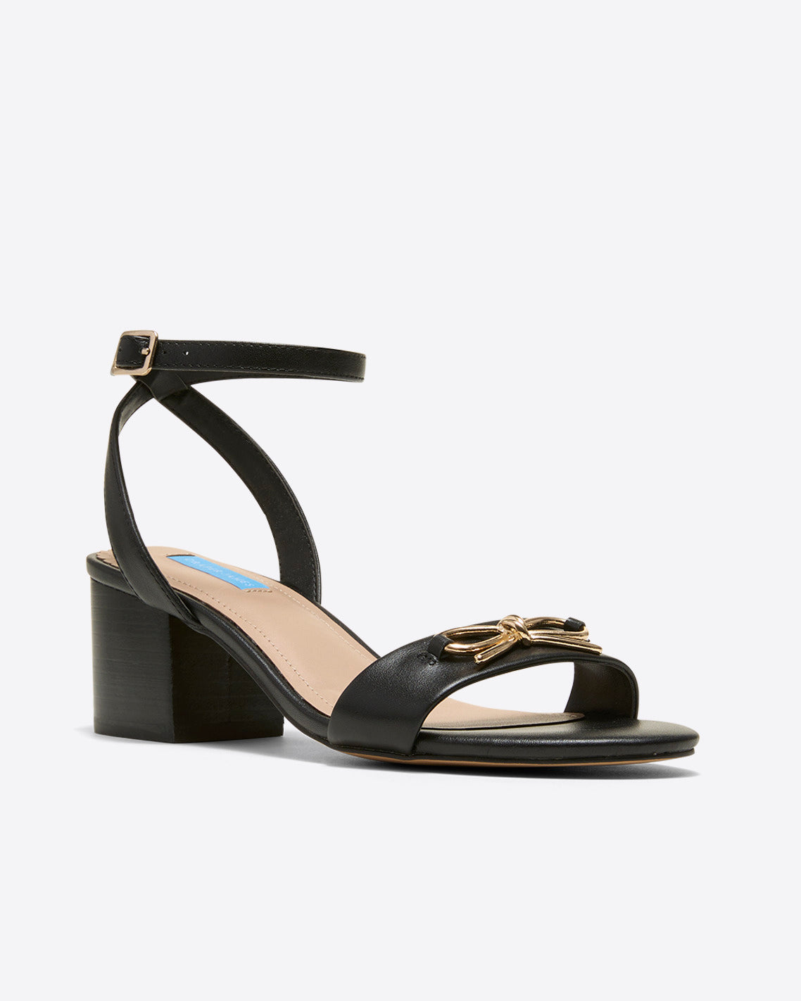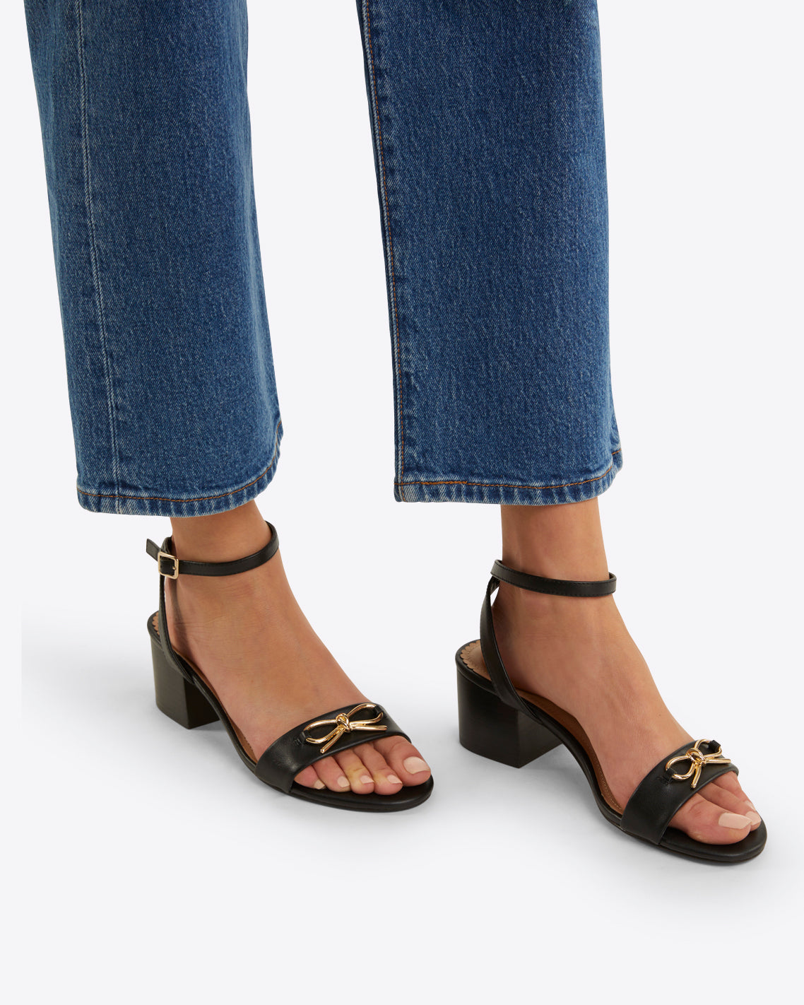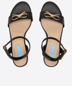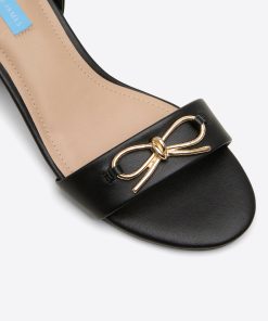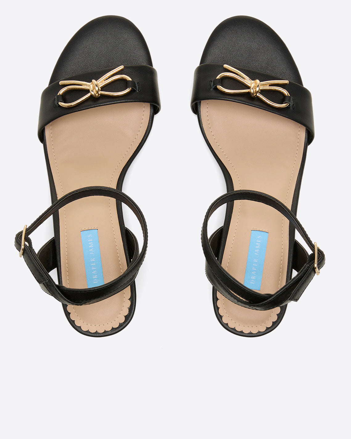 Strap in. Our Percy Sandal in Black With Gold Bow is made from Nappa Leather with a walkable 2.25-inch heel, a knotted bow and an adjustable ankle strap. Wear them with skirts, sundresses, and even jeans, all spring and summer long.