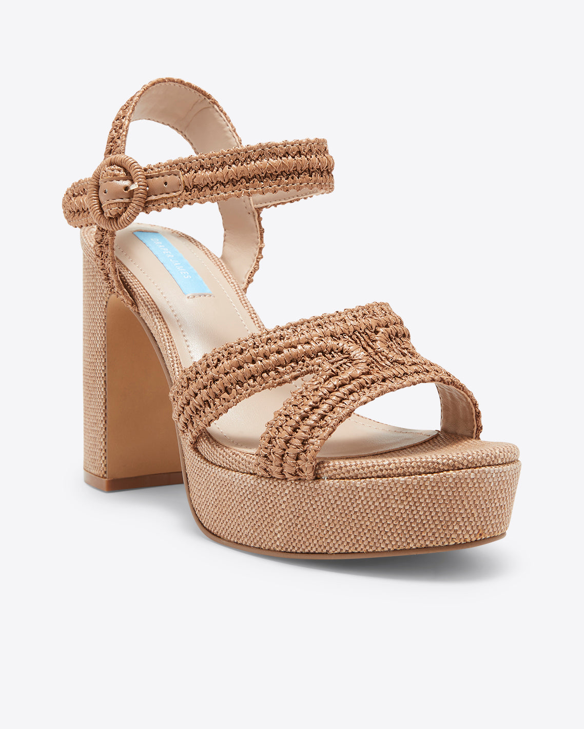 High hopes. Our Strappy Heels combine a surprisingly comfortable stacked four-inch heel with sturdy faux-raffia straps for a look that’s absolutely perfect for spring and summer. We love them with jeans, both wide-legged and skinny, but they’re also an ideal pair to wear with your favorite sundress.