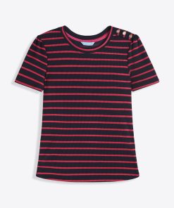 Show your stripes. Constructed from a soft, stretchy knit, our Stripe Crewneck Tee is as sleek as it is chic. Finished with a row of buttons on the shoulder, it has a classic look that’s a perfect match for your favorite jeans or pants. Wear it to work, weekend gatherings, wherever!