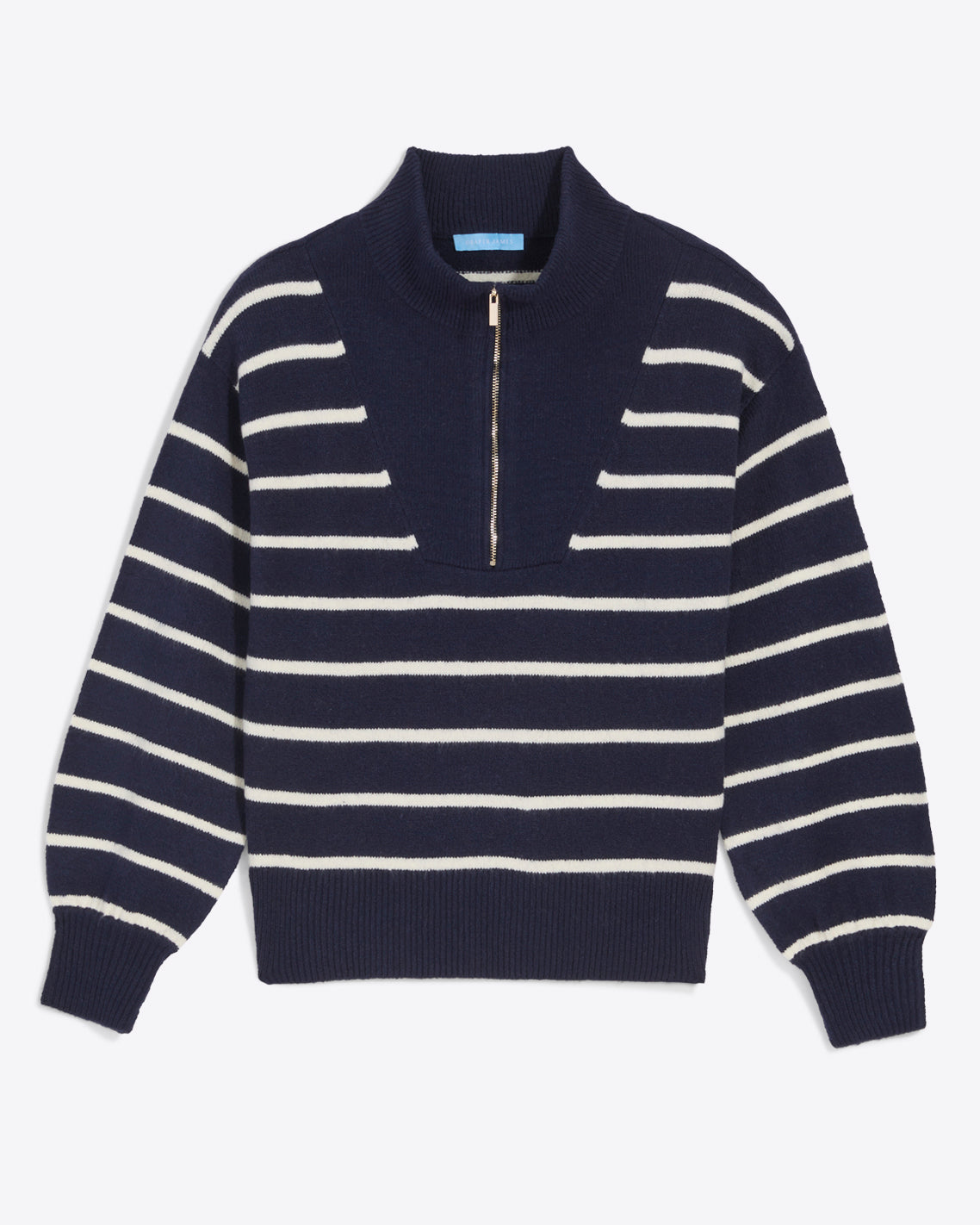 Get in line. Knit from a soft stretch-cotton blend and finished with a zippered turtleneck, our Striped Quarter-Zip Sweater is both cozy and cool. You’ll love it year-round, over your favorite jeans, leggings, shorts…