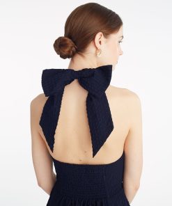 It’s shoulder season. Show yours off in our Violeta Halter Neck Dress in Seersucker, a party-perfect dress with a flattering self-tying halter neckline, smocked back panel and handkerchief hem. Skip the necklace and accessorize with earrings and bracelets; finish the look with a pair of high-heeled sandals.