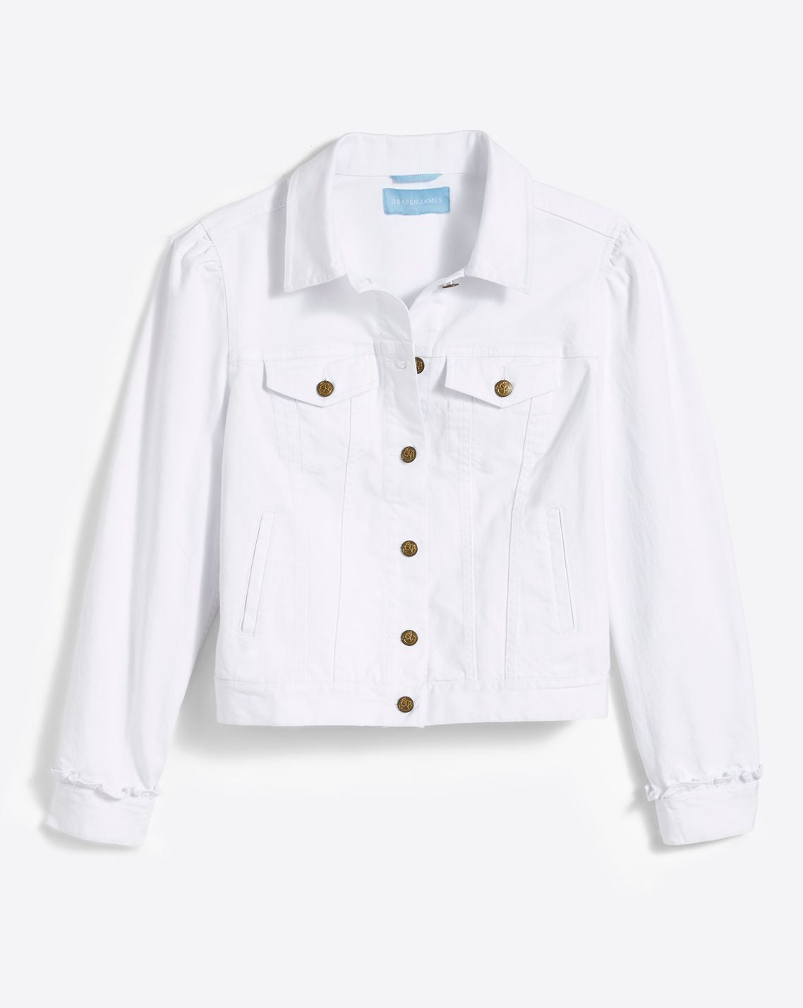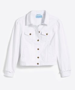 This white denim jacket is the perfect spring staple piece. Featuring a light puff sleeve this denim jacket is a classic and will be great to throw over a dress, top, or to pair with our white flare jeans!